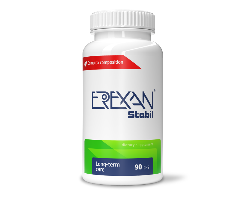EREXAN Stabil je výživový doplněk vyvinutý speciálně pro dlouhodobou péči o plodnost a normální funkci reprodukčního systému mužů. Obsahuje Široký komplex účinných rostlinných extraktů, vitamínů a minerálů podporujících tvorbu testosteronu, který je esencí mužnosti.