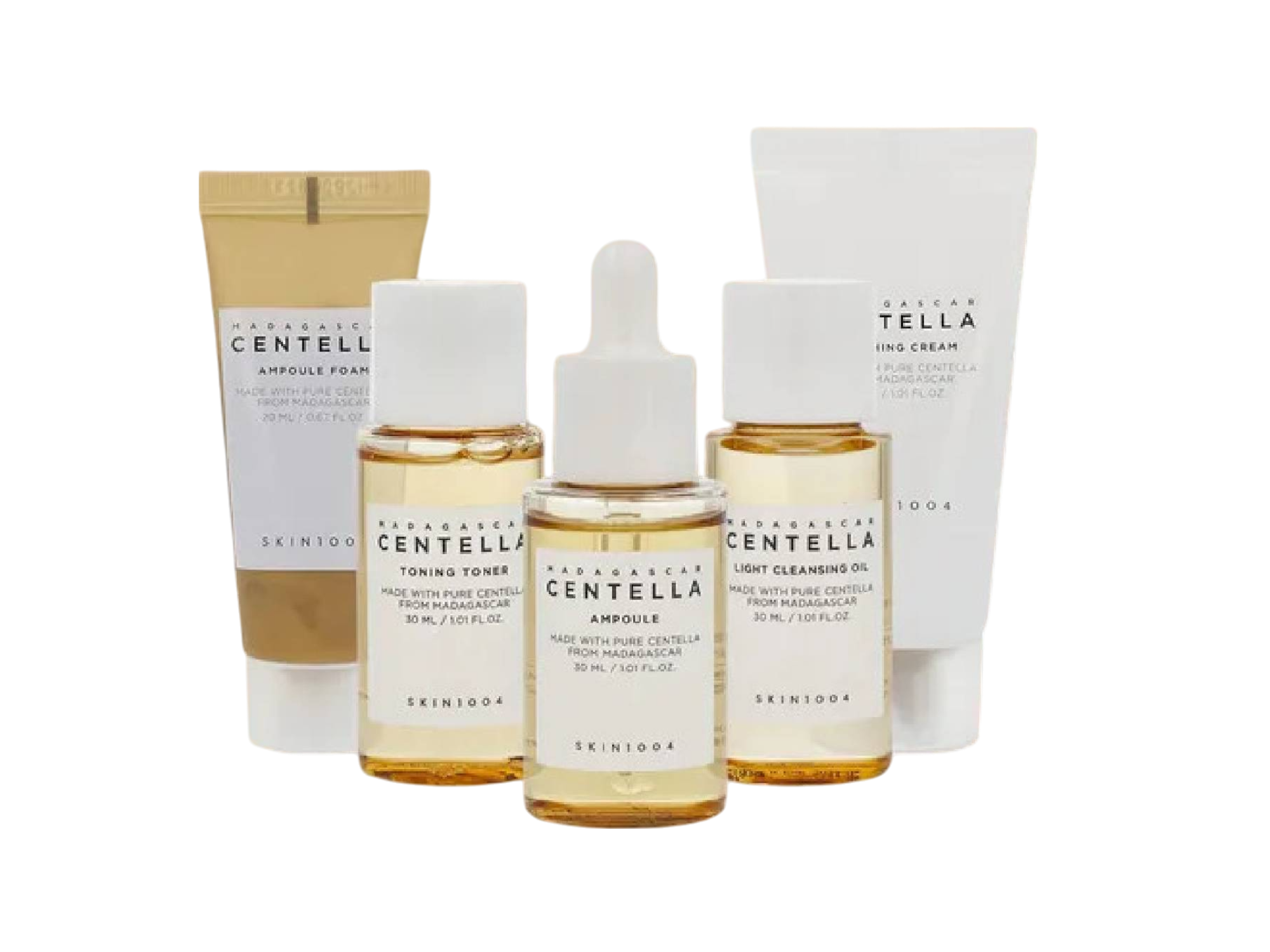 SKIN1004 Madagascar Centella mycí pěna 20 ml + tonikum 30 ml + ampule 30 ml + krém 30 ml + čisticí olej 30 ml dárková sada